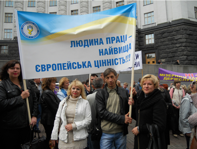 Профспілки пікетували Кабінет Міністрів України. 15 жовтня 2014р. відбулася акція протесту профспілок з нагоди відзначення Міжнародного дня боротьби з бідністю у формі маніфестації та пікетування Кабінету Міністрів України. Організаторами заходу стала Федерація профспілок України.