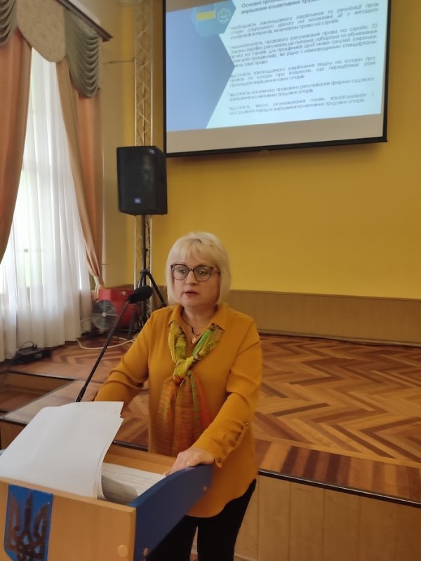 - запобігання виникнення колективних трудових спорів (конфліктів), їх прогнозування та своєчасному вирішенню проблем разом з Оксаною Атаманюк – начальником Відділення НСПП. Обговорили проект Закону України «Про колективні трудові спори»;