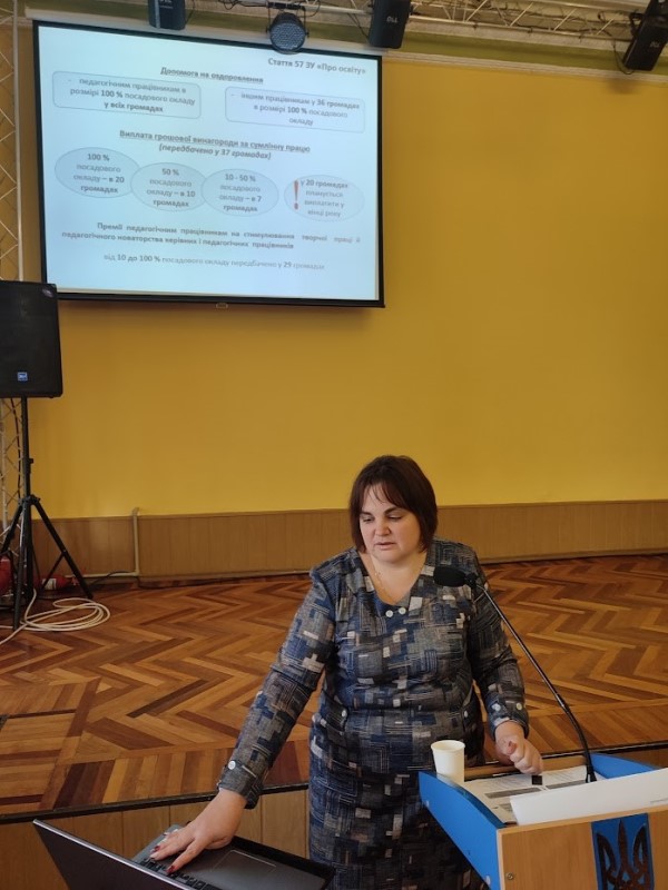 Працівники обласного комітету спрямовують зусилля на реалізацію колективно – договірних гарантій в оплаті праці освітян. Світлана Михалик – завідувачка відділом з соціально-економічних питань, проаналізувала стан забезпечення виплат заробітної плати, розподіл освітньої субвенції в області та планування Держбюджету на 2024 рік. Голови територіальних та первинних профорганізацій мали змогу ознайомитися з даним питанням в розрізі територіальних громад.