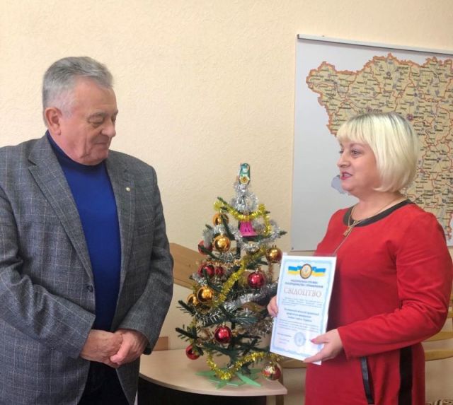 Оксана Атаманюк - начальник служби посередництва і примирення в Полтавській області вручила Свідоцтво обласній організації Профспілки працівників освіти і науки України про підтвердження репрезентативності на територіальному рівні для участі у колективних переговорах з укладання територіальних угод та для делегування представників до органів соціального діалогу.