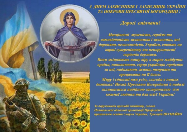 З ДНЕМ ЗАХИСТНИКІВ І ЗАХИСНИЦЬ УКРАЇНИ ТА ПОКРОВИ ПРЕСВЯТОЇ БОГОРОДИЦІ!